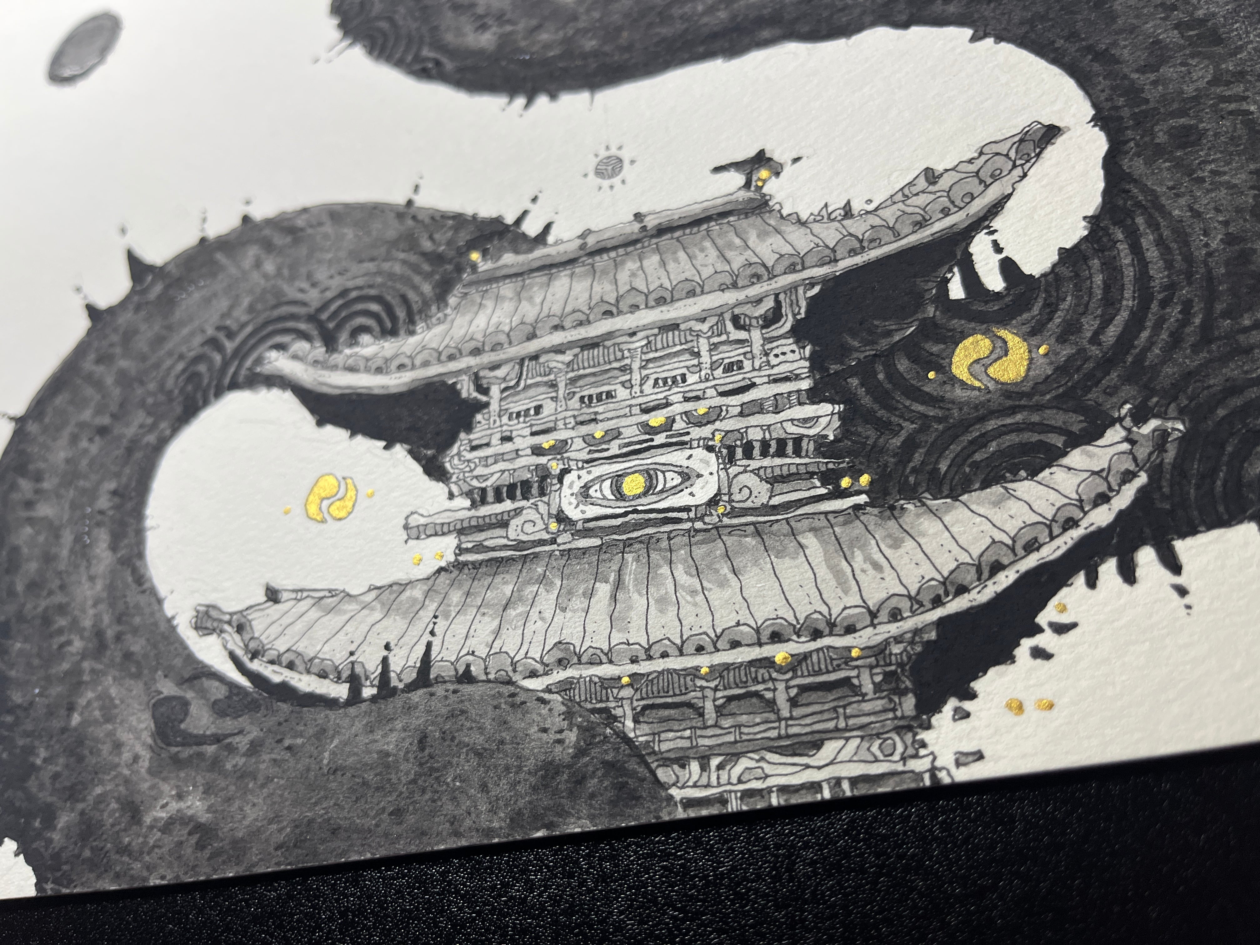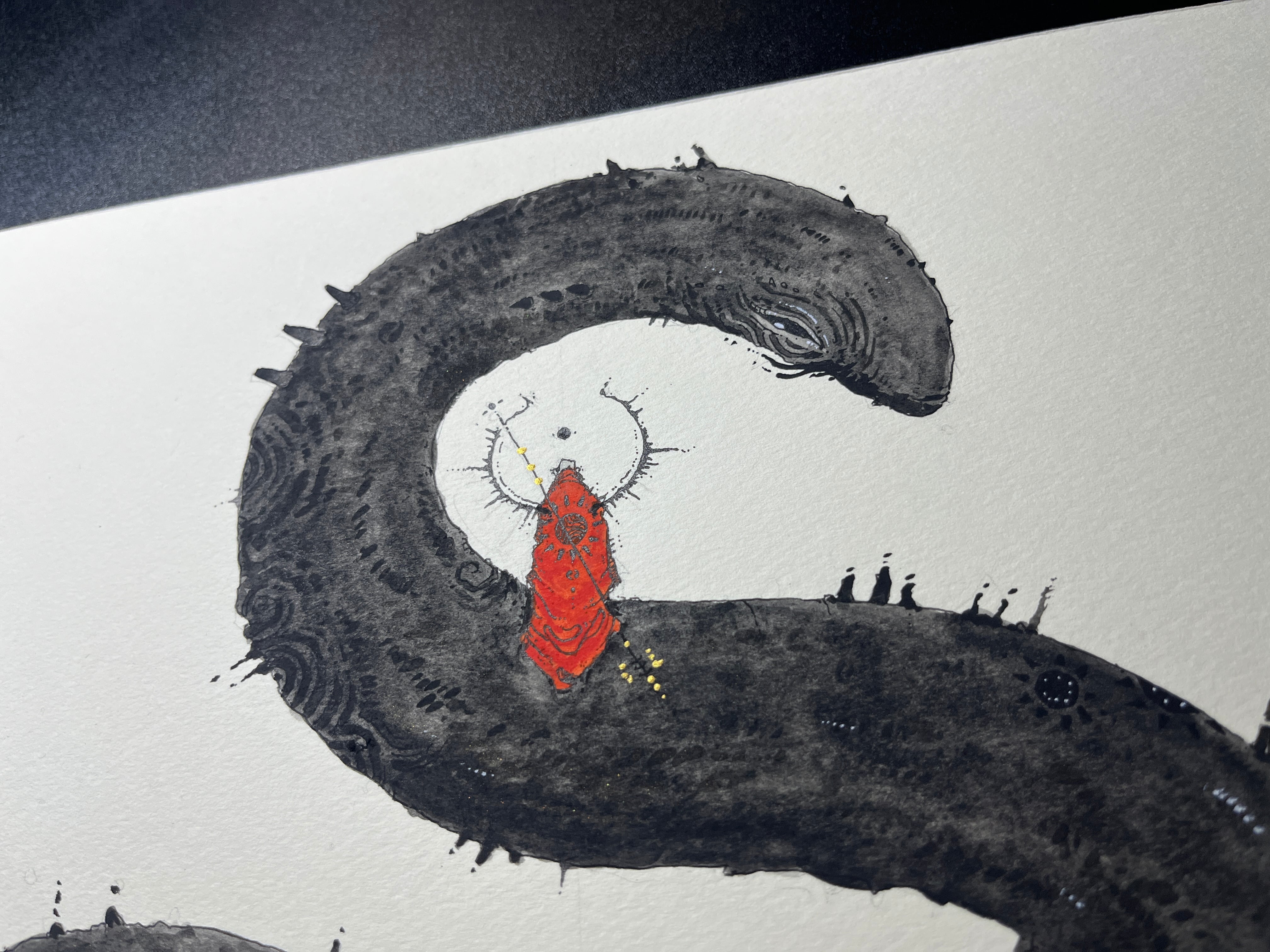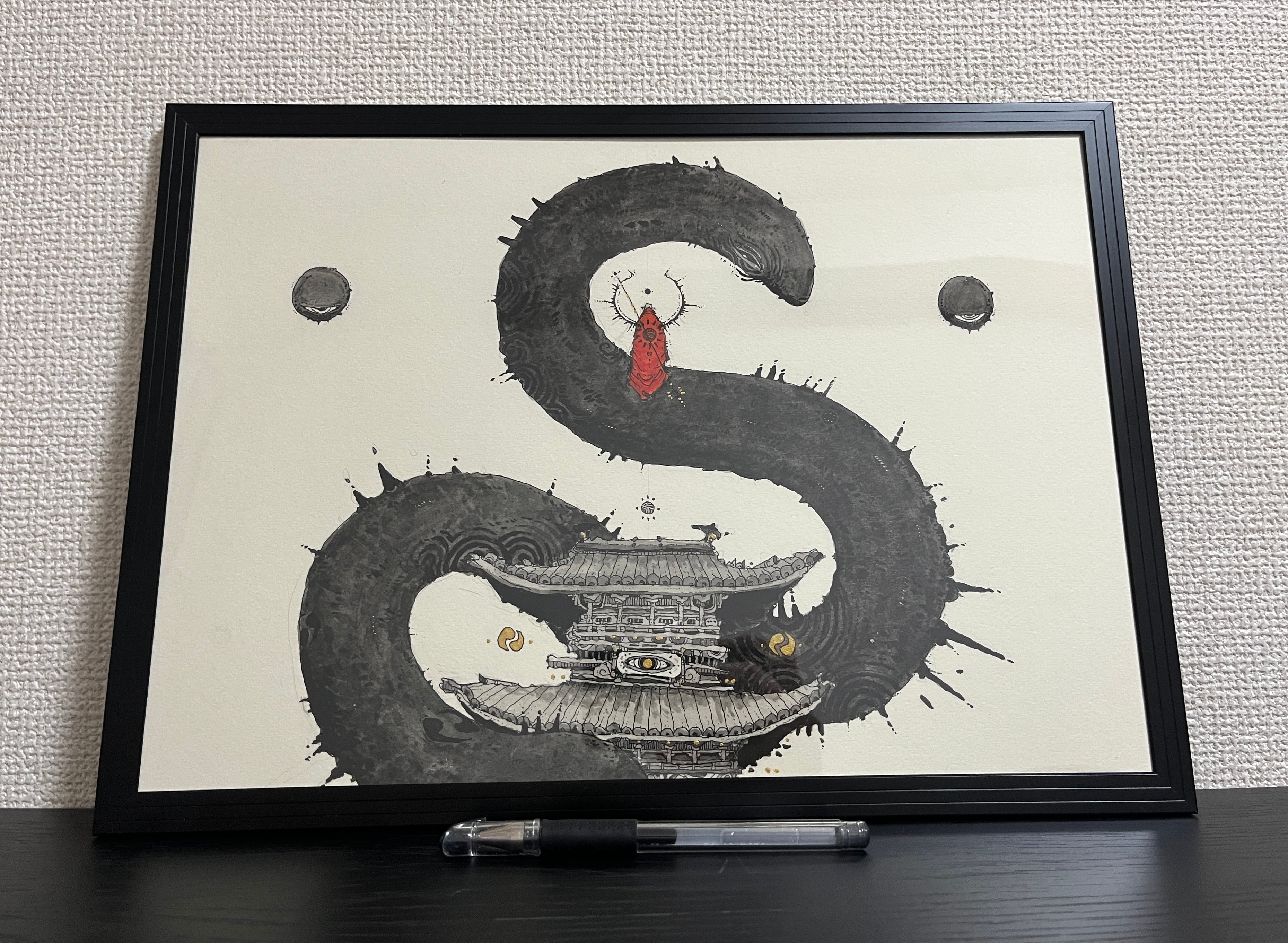 ペン ▶︎ 黒ペン、水彩